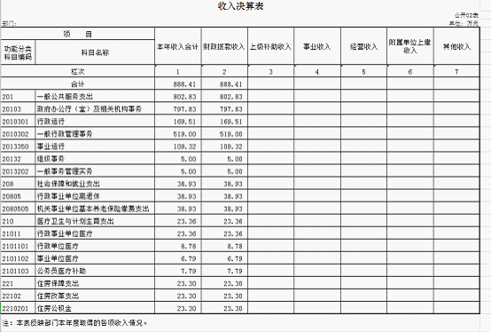 表二:收入决算表