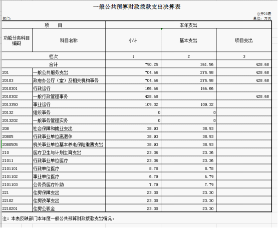 (一)一般公共服务支出年初预算为568.91万元,支出决算为 704.66万元,完成年初预算的123.86 %。主要用于为本办提供后勤服务的相关支出,包括根据国家规定的基本工资和津补贴标准等安排的人员经费支出和日常公用经费支出,以及为维持办机关正常运转提供后勤服务的相关支出。主要原因是本年度追加了政府采购资金及人员增资。具体如下: