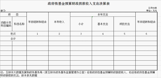 玉林市大数据发展和政务服务局(原玉林市政务服务监督管理办公室)2018年度政府性基金支出年初预算为0万元,支出决算为0万元,完成年初预算的100 %。