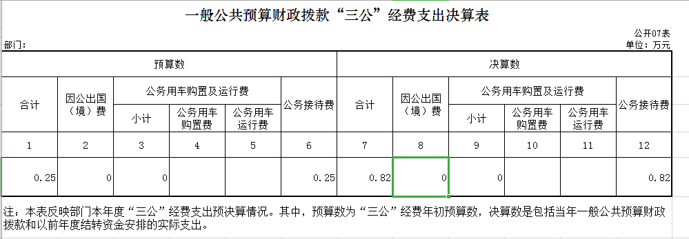 2018年度一般公共预算财政拨款安排的“三公”经费支出决算中,因公出国(境)费支出决算 0 万元;公务用车购置及运行费支出决算 0 万元;公务接待费支出决算0.82 万元。