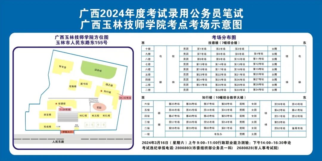 广西2024年度考试录用公务员(选调生)笔试将于3月16日举行,为进一步提升玉林考区服务保障质量,现就有关注意事项提示如下,请广大考生做好应试准备工作,准确掌握考试时间、考点地址及相关注意事项。